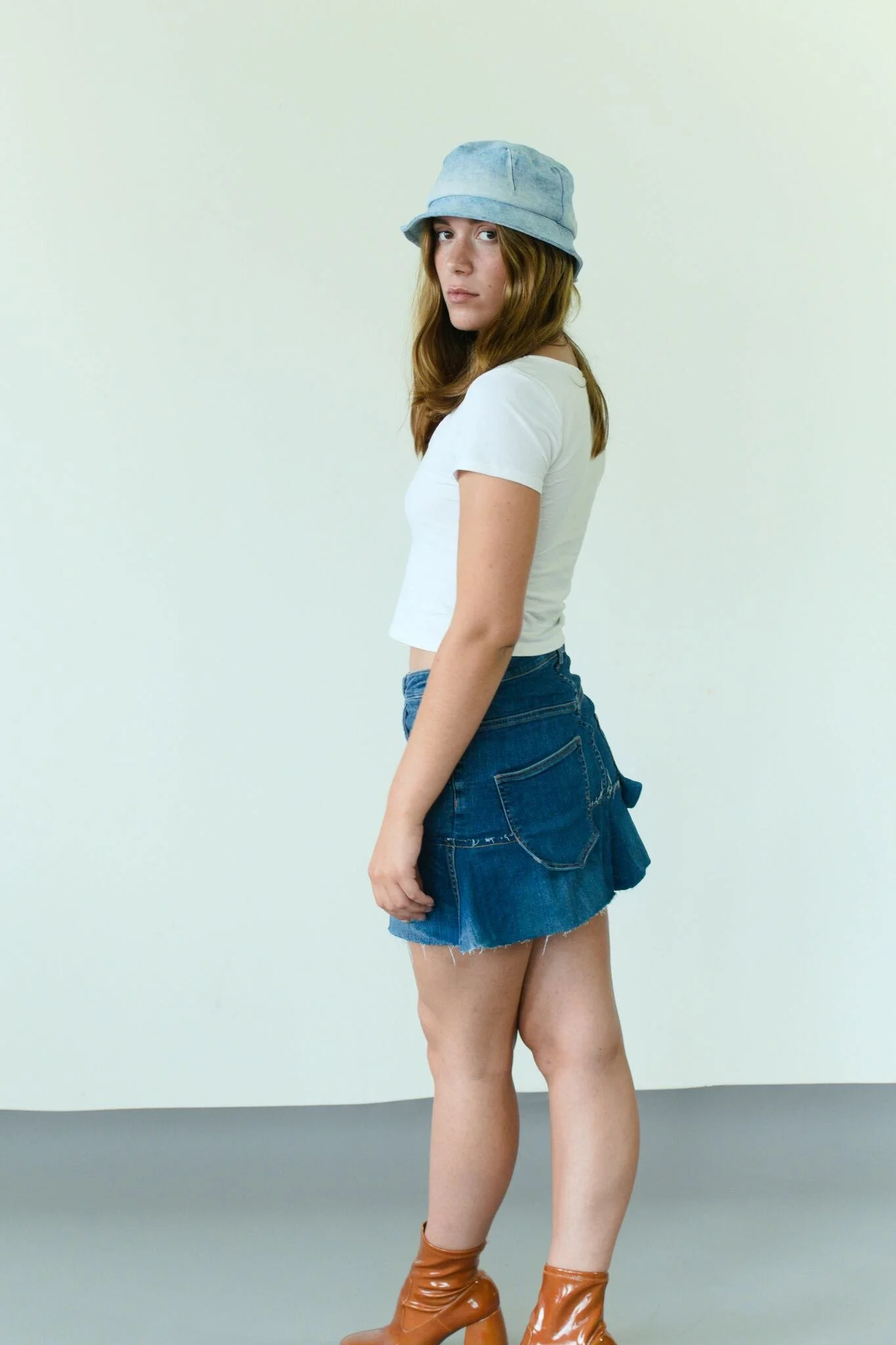 "Blue Jeans Bliss Skirt" är en stilsäker kjol som fängslar med sin djupblå denim. Med sin bekväma passform och tidlösa design ger den en avslappnad elegans som kan kläs upp eller ner. En mångsidig och trendig tillskott till din garderob som utstrålar självsäkerhet och stil.