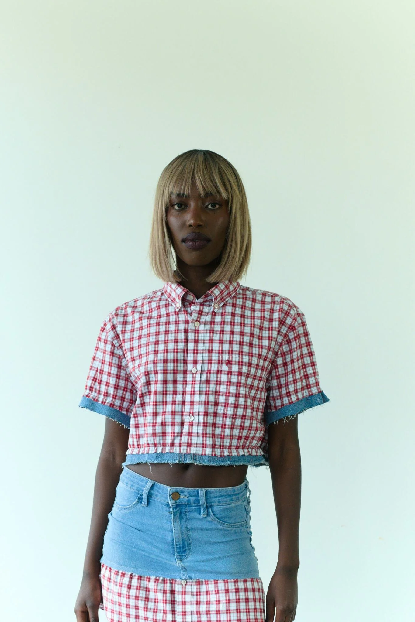 "Denim Duet Reborn" kjolen är en trendig omgjord kreation som kombinerar återvunnen denim med modern stil. Med smickrande passform och unik design ger den en stilsäker och hållbar look.