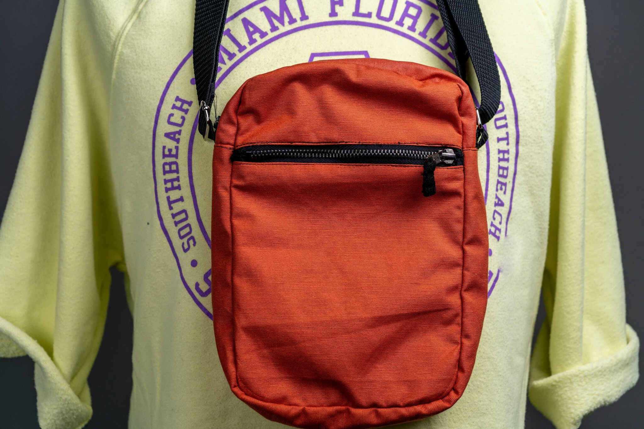 Vår "ORANGE" remake festivalväska är en trendig och unik accessoar som är perfekt för festivalälskare. Tillverkad av återvunna material, är den både stilfull och hållbar. Med två praktiska fickor, en på framsidan och en på insidan, ger den gott om utrymme för att organisera dina festivalnödvändigheter. Dessutom har den bekväma justerbara remmar för att säkerställa en optimal passform och bekväm användning. Denna festivalväska är redo att bli din pålitliga följeslagare under festivaläventyren samtidigt som den visar upp din personliga stil och bidrar till hållbarhet. Välj vår "ORANGE" remake festivalväska för en kombination av stil, funktionalitet och miljömedvetenhet!