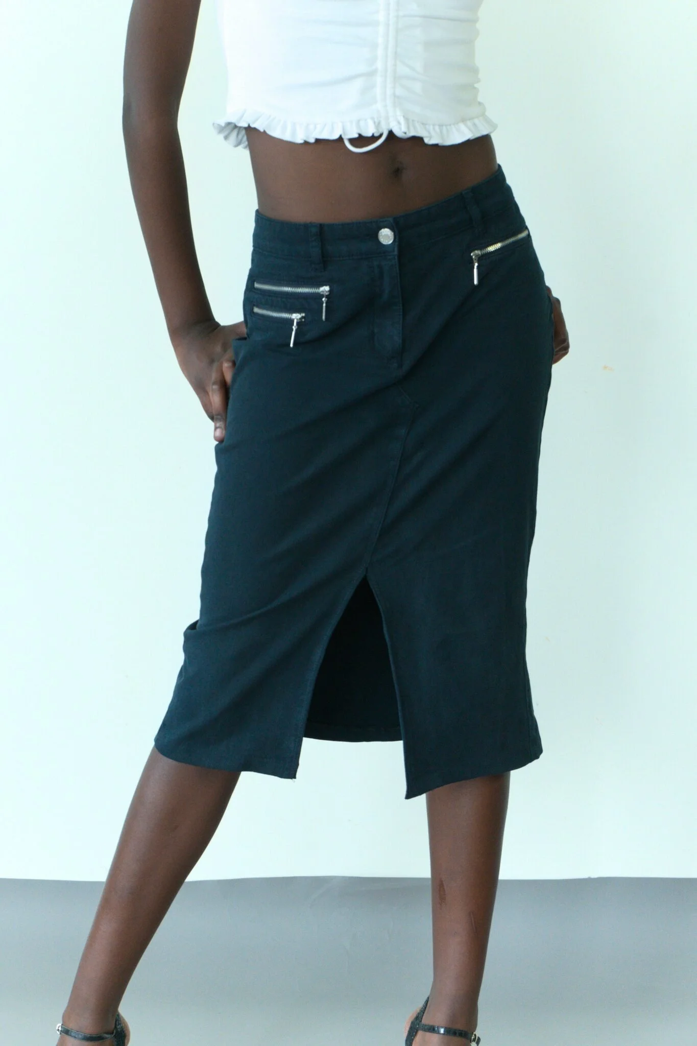 "Sleek Noir Skirt" är en modern svart kjol med smickrande passform och minimalistisk design som utstrålar enkel elegans. Perfekt för att skapa mångsidiga och sofistikerade looker.